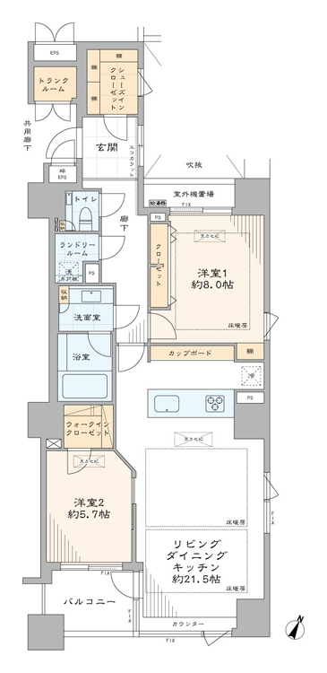 | 房間佈局详细信息 | 2LDK+WIC・SIC |