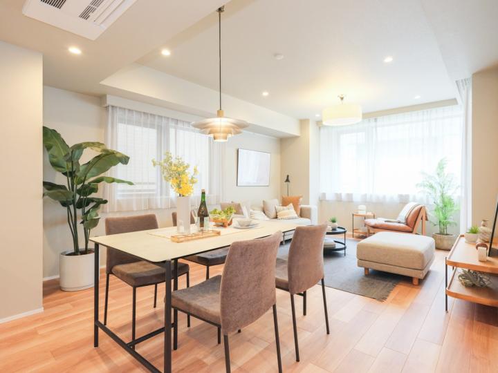 | 設備 | 都市ガス・公営水道・本下水・EV・オートロック・宅配ボックス・CATV導入済み・トイレ新規交換・トランクルーム・光ファイバー導入済(共用部まで)・床暖房・浴室換気乾燥機・買物便利・食器洗い機・駅近 |