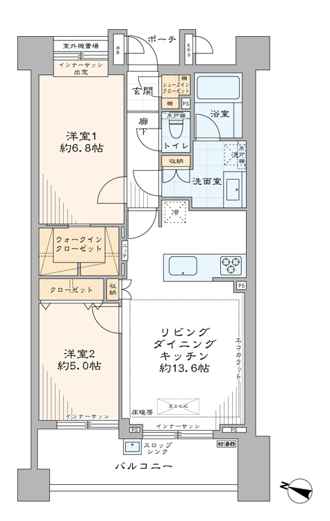 | 間取り詳細 | 2LDK+WIC・SIC |