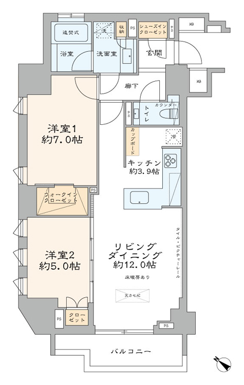 | 間取り詳細 | 2LDK+WIC・SIC |