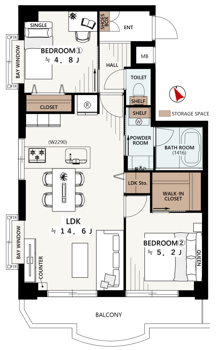 | 間取り詳細 | 2LDK+W |