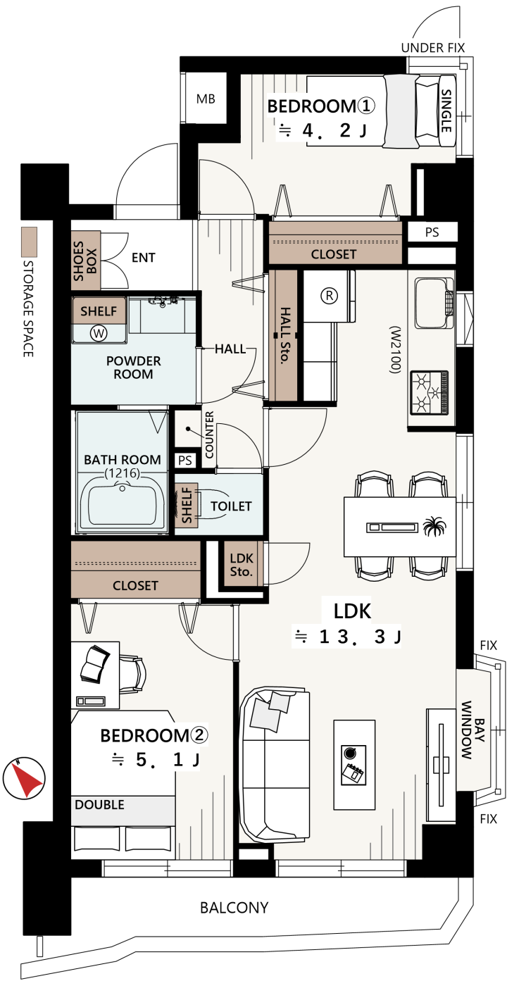 各居室や廊下・リビングに収納スペース確保