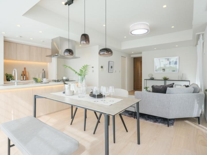 | 設備 | 都市ガス・公営水道・本下水・EV・オートロック・宅配ボックス・TVモニター付インターフォン・トイレ新規交換・光ファイバー導入済(共用部まで)・床暖房・浴室換気乾燥機・食器洗い機 |