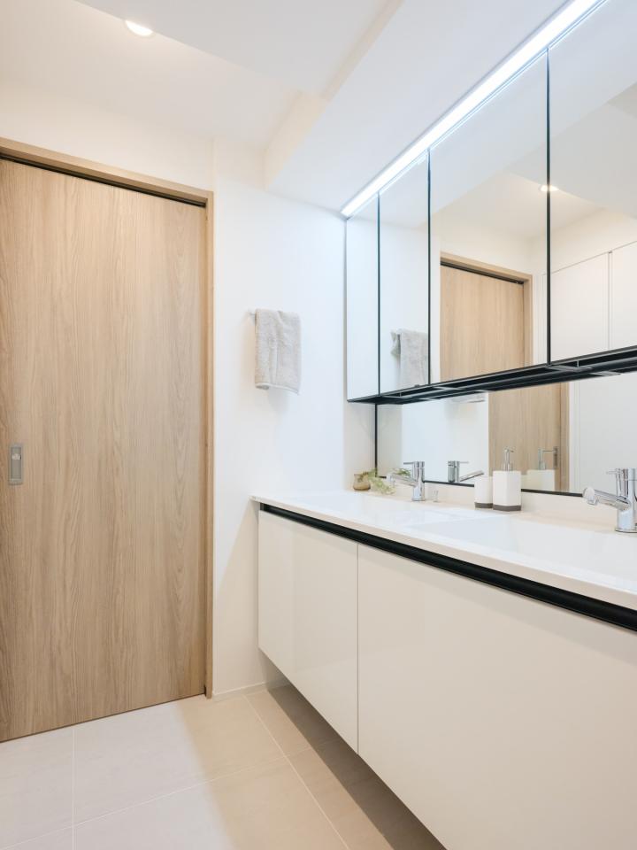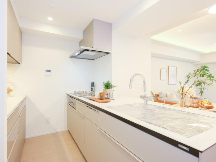 | 設備 | 都市ガス・公営水道・本下水・EV・オートロック・宅配ボックス・CATV導入済み・TVモニター付インターフォン・トイレ新規交換・ペット飼育可・両面バルコニー・光ファイバー導入済(共用部まで)・床暖房・浴室換気乾燥機・食器洗い機 |